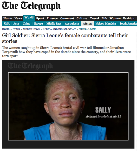 Girl Soldier, a short film by Reportage photographer Jonathan Torgovnik, is an intense testimony about the atrocities committed during the Sierra Leone civil war, and the role that female child soldiers played in the 10-year conflict. Released in mid-November by The Telegraph Saturday Magazine, the film is the result of a close collaboration between Jonathan (who was initially commissioned by the Telegraph to shoot a portrait series) and myself. It was truly an honor to work with Jonathan, who is one of the most thoughtful photographers I have had the opportunity to work with, and truly dedicated to his craft and his vision.